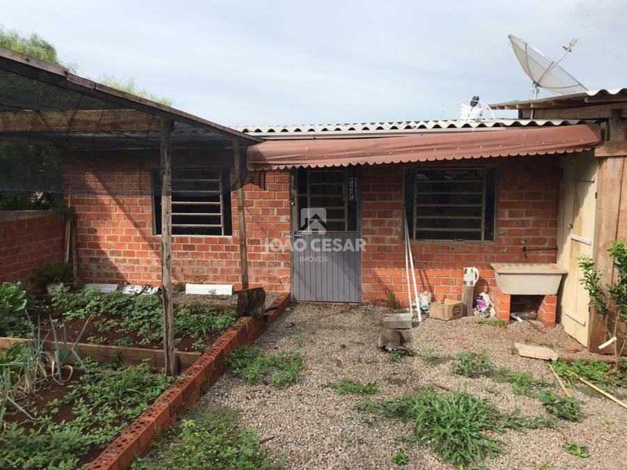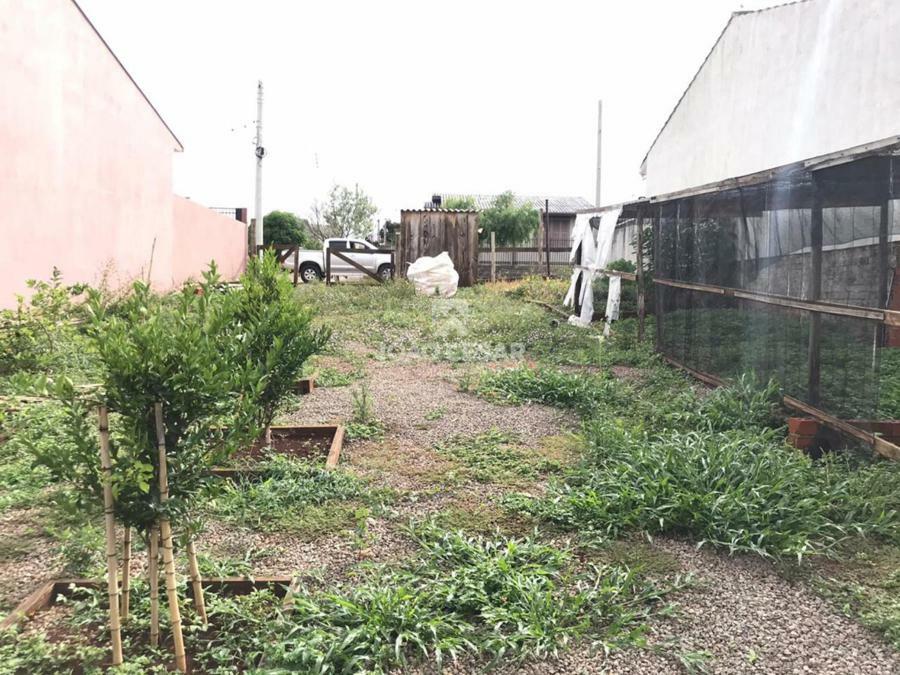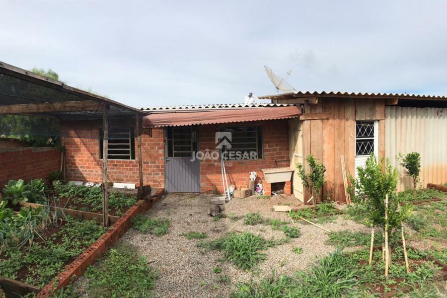 Terreno amplo com uma construção de alvenaria aos fundos e algumas árvores frutíferas.